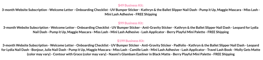 To join as a Brand Ambassador, you will choose 1 of the 3 join kits that are available, all at different price points. Which kit you choose is personal preference, but if you need help deciding, please reach out to me and let me know! There is also a FREE affiliate option. While it doesn’t have as many perks as becoming a Brand Ambassador, you can still earn 10%-15% commission on product sales. Here is a breakout of the kits and the Brand Ambassador v. Affiliate option.